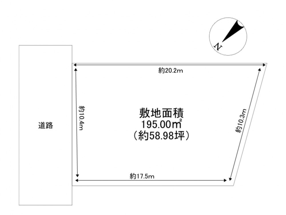- 北側 公道3.8m 間口約10.4m 完全