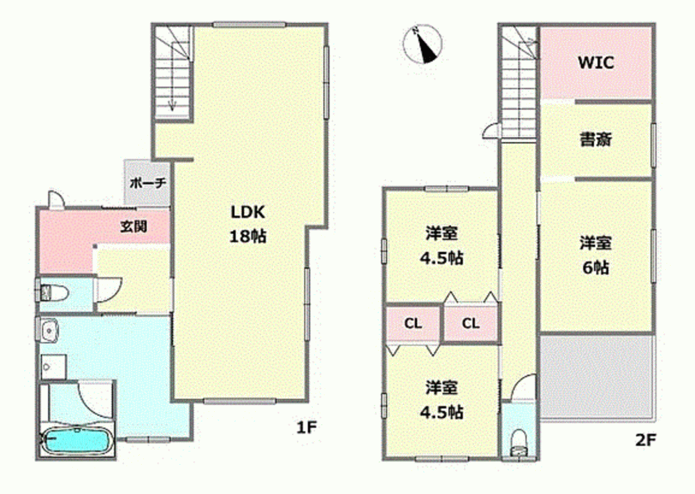 - システムキッチン、カウンターキッチン、洗浄便座、追い焚き、ウォークインクローゼット、モニタ付インターホン、トイレ2箇所