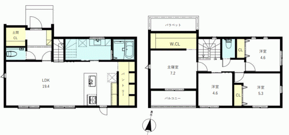 - システムキッチン、カウンターキッチン、食器洗浄乾燥機、IHクッキングヒーター、洗浄便座、浴室乾燥機、追い焚き、床暖房、複層ガラス、ウォークインクローゼット、モニタ付インターホン、駐車場2台分、乾太くん、ほっカラリ床、魔法びん浴槽